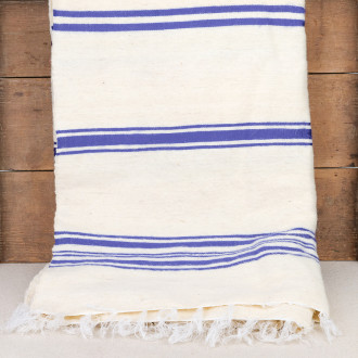 Large rustic blanket in pure unbleached wool with blue or red stripes, Basque country spirit.