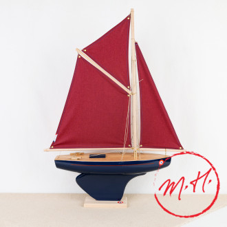 Beautiful tuna boat in red or blue wood, solidly built in Brittany by the same family of craftsmen for three generations.