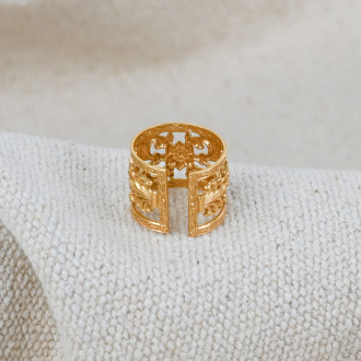 Elegant and delicate, this filigree ring in gilded copper revisits the classic form of the signet ring with a floral openwork design of rare finesse. Each chiseled detail evokes the poetry of nature and bears witness to exceptional craftsmanship handed down from a historic French manufacturer.