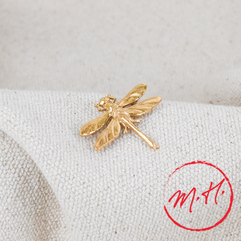 A golden dragonfly, a symbol of lightness and transformation, gracefully placed on your outfits...