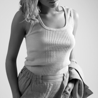 Knitted in France in a thick, soft knit, it ensures a clean, non-transparent fit. The 100% cotton fabric hugs the body without constricting it.