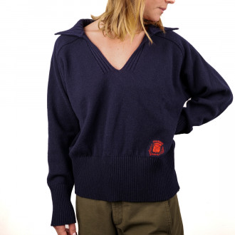 This jacket has a loose, timeless cut, with a slightly blousy fit, designed for comfortable, elegant wear. It features ribbed sleeves and a sailor collar, and stops at the hips for a balanced silhouette. Knit in 100% merino wool, particularly soft and supple, it's non-itchy and warm despite its thinness. Available in navy or ecru, it's easy to wear everyday in winter, or mid-season.