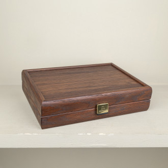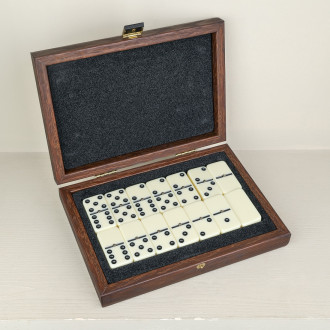 Set of dominoes in their walnut finish box handcrafted.