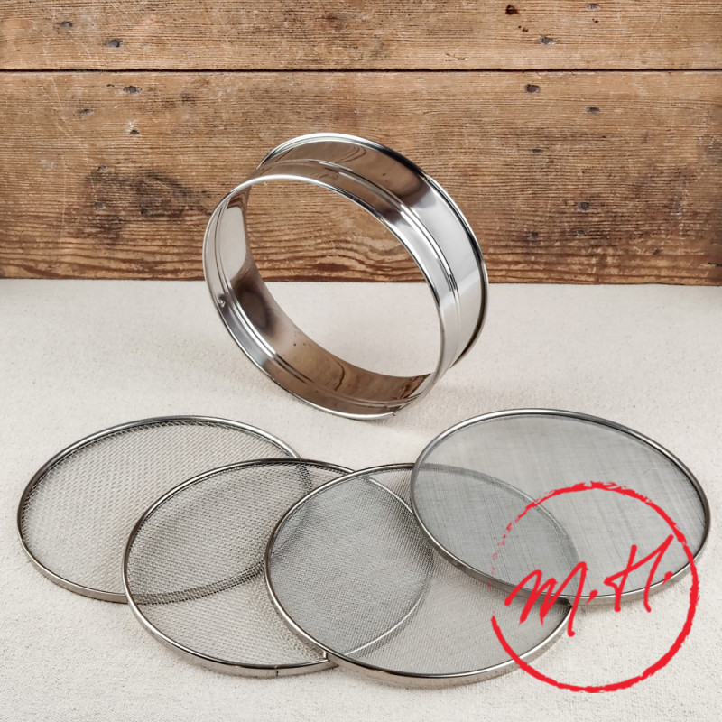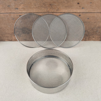 This 21cm-diameter cooking and baking utensil is made entirely of stainless steel. It features 4 easily interchangeable mesh sizes: 0.5m, 1mm, 2mm or 3mm.
