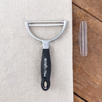 Its wide, 9 cm, double-edged blade allows you to quickly work on foods that usually take a long time to peel, such as squash, pumpkins and sweet potatoes, or to shred cabbage, lettuce and Parmesan cheese, which will be ready in record time thanks to the blade's pivoting function.