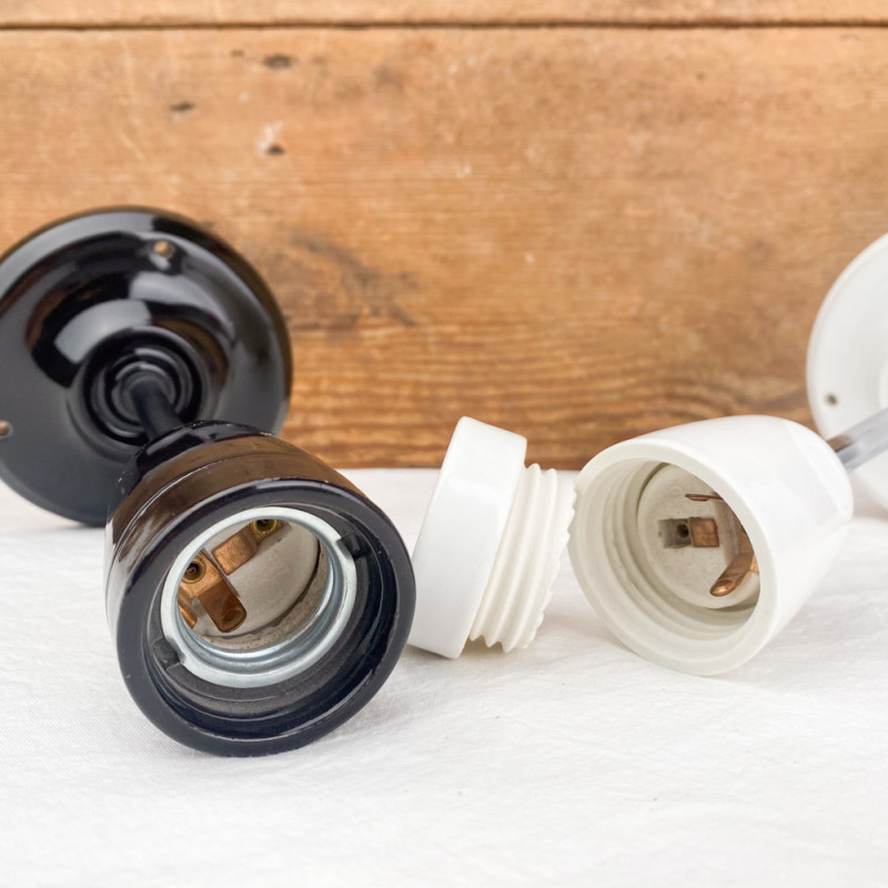 A ceramic wall lamp with a rigid tube, which can also be used as a ceiling lamp or screwed onto a horizontal support.
