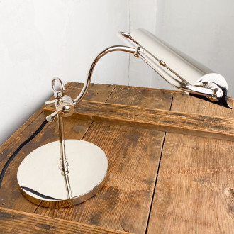 We love the clean lines and fine finish of this desk lamp in polished or chrome-plated solid brass.