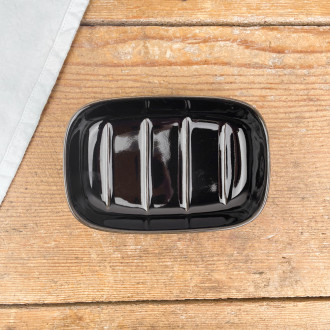 Sa ligne, bien qu'épurée, a été pensée pour accueillir toutes formes de savonnettes sans difficulté et les stries qui zèbrent son fond servent à supporter le savon sans qu'il ne baigne dans l'eau.