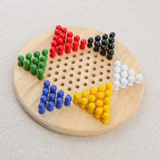 Ce modèle reprend avec simplicité les principes essentiels du jeu : un plateau en bois clair et aux creux réguliers lui donnant une forme d'étoile, accompagné de soixante-dix pions en bois coloré. Chaque élément a été conçu pour offrir une prise en main agréable, tout en faisant de l’ensemble un bel objet décoratif.