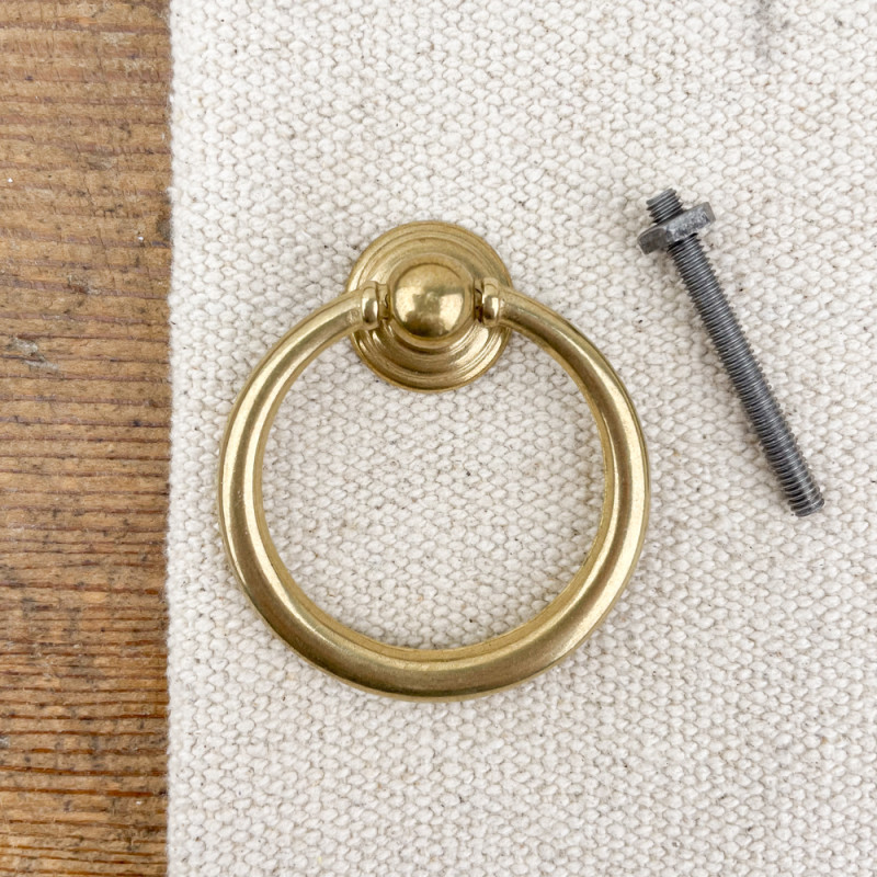 Un anneau mobile sur une bille de laiton patiné pour ajouter un détail décoratif et sophistiqué en finition de meuble.