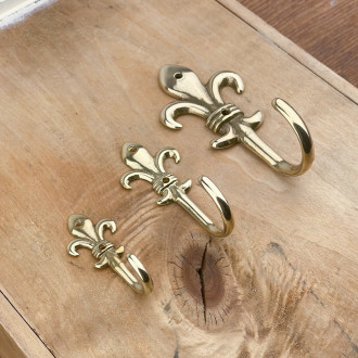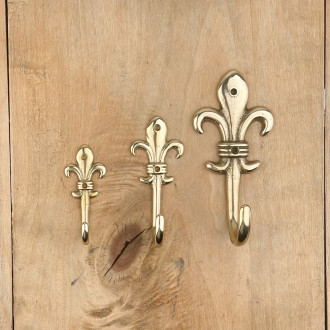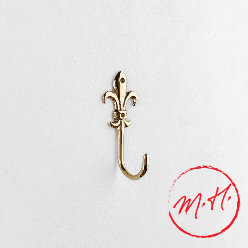 Ce crochet mural en laiton massif s’inspire des formes décoratives du style florentin