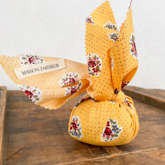 Bien noué dans des tissus provençaux vintage, le furoshiki à la lavande est un cadeau idéal à offrir aux invités ou à rapporter de son passage en Provence.