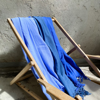 La fouta fait aussi paréo avec de grandes dimensions (90x180cm) et se décline en couleurs estivales à assortir à son maillot de bain préféré : mauve glycine, bleu azur ou encore vert bambou.