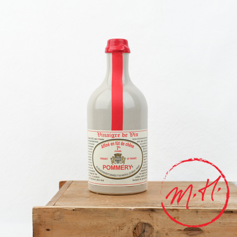 Un vinaigre de vin d'exception, affiné en fût de chêne, issu d'un assemblage de vins de grande qualité et présenté dans une jolie bouteille en grès cachetée à la cire.