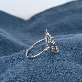 Cette bague en argent 925/1000, signé par une créatrice française, rend hommage aux symboles de la Camargue, à la fois traditionnels et intemporels.