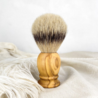 Le blaireau de rasage possède une tête en poils pur argent fabriqué manuellement : ces poils naturellement doux et flexibles présentent un reflet argenté à leur extrémité et une fine bande noire sur le milieu. Ces poils retiennent bien l'eau pour produire sur la peau du visage une mousse dense et un effet massant agréable qui prépare au rasage.
