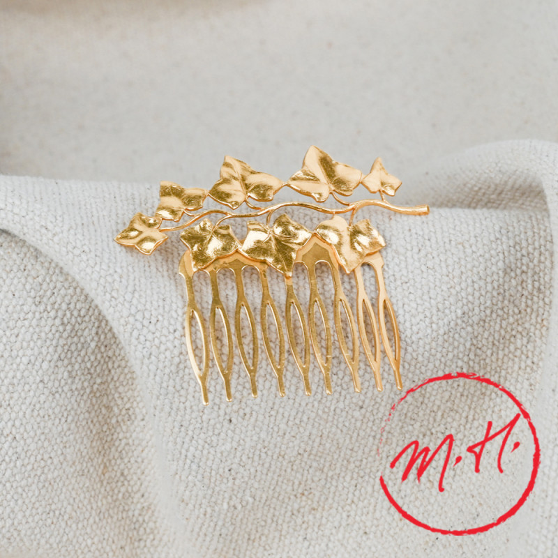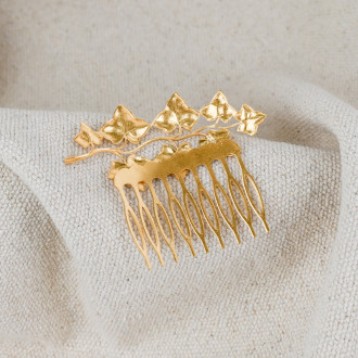Surmontez vos coiffures d'une pièce d'exception avec ce peigne barrette "lierre grimpant" délicatement façonné en cuivre en finition dorée.