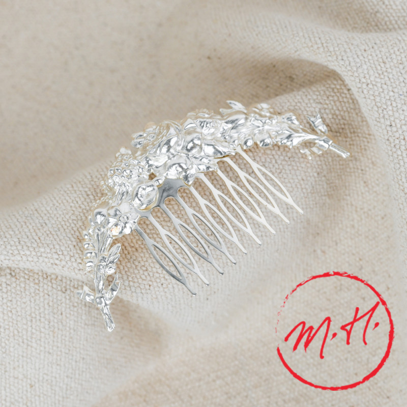 Peigne guirlande de roses argenté
