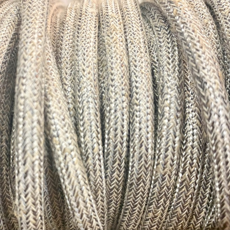Câble électrique tubulaire recouvert de textile argenté, vendu au mètre.