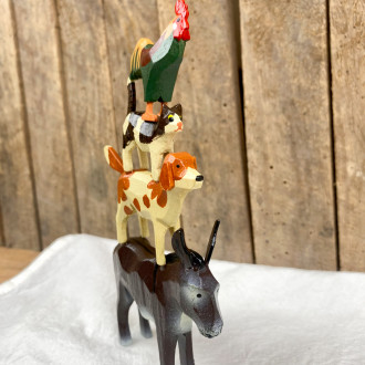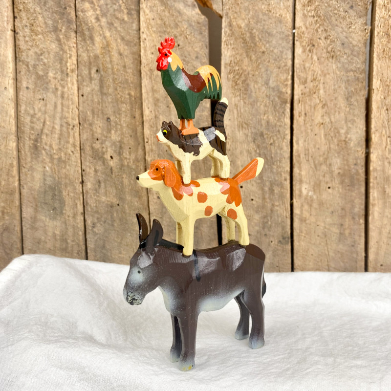 Les Musiciens de Brême s'échappent du célèbre conte des frères Grimm ! Une œuvre en bois sculptée à la main, pleine de charme et de poésie pour votre intérieur.