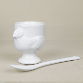 Ce set de 4 coquetiers en forme de poule, chacun accompagné de sa petite cuillère assortie, est fabriqué en porcelaine blanche au style doux et intemporel.