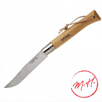 Toute la tradition Opinel déclinée en version géante : Un manche en hêtre verni naturel, des formes galbées et douces, une lame fine et précise en acier inoxydable Sandvik 12C27 modifié qui lui procure une qualité de coupe nette et soyeuse et doté d'un lien de cuir pour le balader partout avec vous.