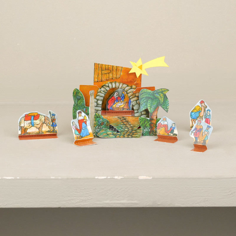 Une crèche en papier cachée dans une boîte d'allumettes...