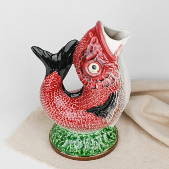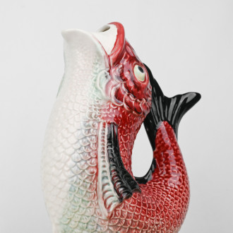 Carafe en barbotine en forme de poisson, une touche colorée et drôle à table.