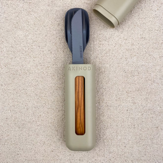 Pour la pause déjeuner ou le pique-nique ces 3 couverts en un en bois d'olivier et acier mat sont pratiques et esthétiques.
