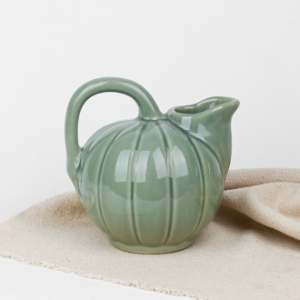 Pichet à eau ou vase à fleurs "melon" en grès émaillé par la Manufacture de Digoin, inspirée par le monde végétal.