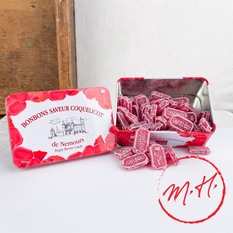 Leur goût floral, subtil et légèrement acidulé évoque les souvenirs d’enfance, les boîtes en fer blanc que l’on ouvrait avec précaution, et les bonbons que l’on laissait fondre lentement. Fabriqués selon une recette traditionnelle à base d’arôme naturel de coquelicot, ces bonbons sont encore confectionnés à l’ancienne, sans colorant artificiel.