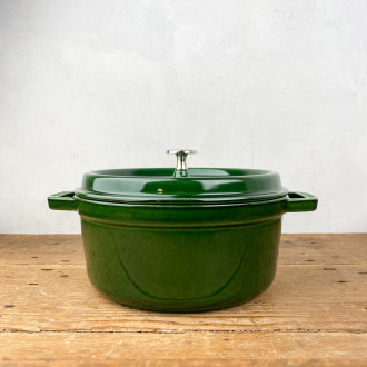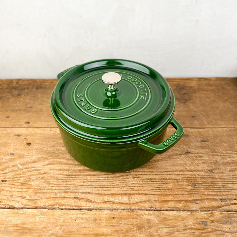 Sublimez vos recettes avec la cocotte en fonte Staub vert basilic, fabriquée en France. Idéalement conçue pour les cuissons lentes et homogènes, cet ustensile de qualité supérieure allie esthétique et performance, passant de la cuisine à la table avec raffinement. Une référence de la cuisson aux nombreux atouts : un design soigné, un poids optimisé, un couvercle élaboré * et un intérieur en émail mat de qualité supérieure.