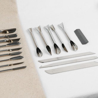 18 gouges aux formes variées : en V, en U, droites, courbes, fines ou larges, pour s’adapter à tous les types de découpes et de matières.