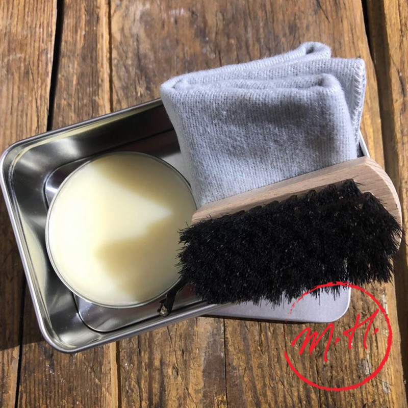 Ce coffret de voyage pour l'entretien de vos chaussures contient : une brosse à cirer, un cirage incolore pour nourrir, imperméabiliser et cirer les cuirs lisses, un chausse-pied et un chiffon doux pour dépoussiérer vos chaussures ou pour les lustrer. Livré dans une boite en métal. Dimensions de la boite : 14x8,5cm.