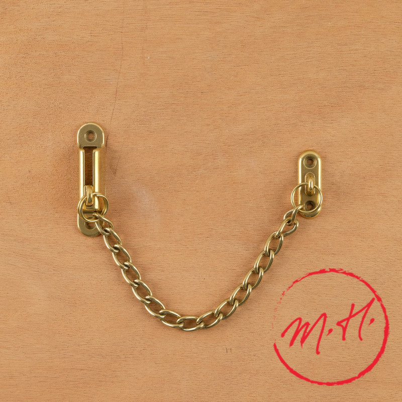 Sobre et bien faite, cette chaîne de porte trouve aussi bien sa place sur une porte d’entrée que sur une fenêtre. Le laiton massif poli lui confère un aspect soigné qui s’accorde facilement avec différents matériaux.