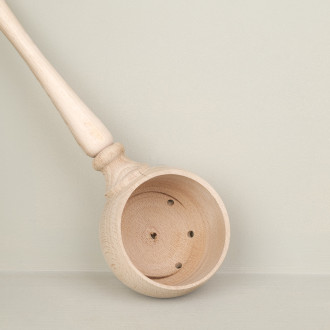 Fabriquée exclusivement pour Maison Empereur, cette maxi louche à olive en bois est bien utile pour servir en grandes quantités, que ce soit pour un événement, une grande tablée ou simplement quand on aime vraiment les olives.
