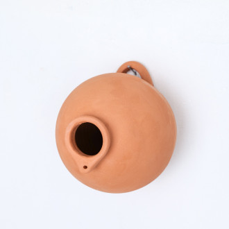 Ce nichoir reprend la silhouette ronde des nichoirs en terre cuite du 17e siècle, une forme simple et efficace. Il est fabriqué à la main à la poterie Vogelpot, à Maurik en Hollande, selon un savoir-faire potier traditionnel qui se lit dans la matière même de l'objet.