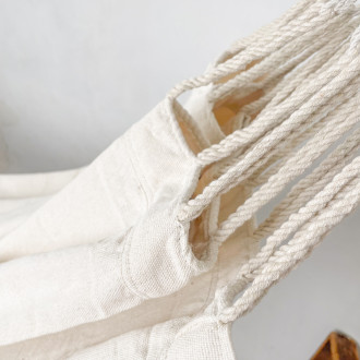 Tissé dans un coton 100 % naturel, non blanchi, ce hamac offre douceur et grande résistance.