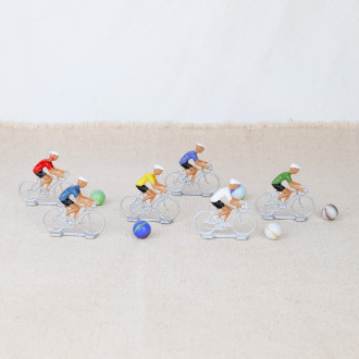 Cycliste peint miniature en position de sprinter, fabriqué en petite série en France.