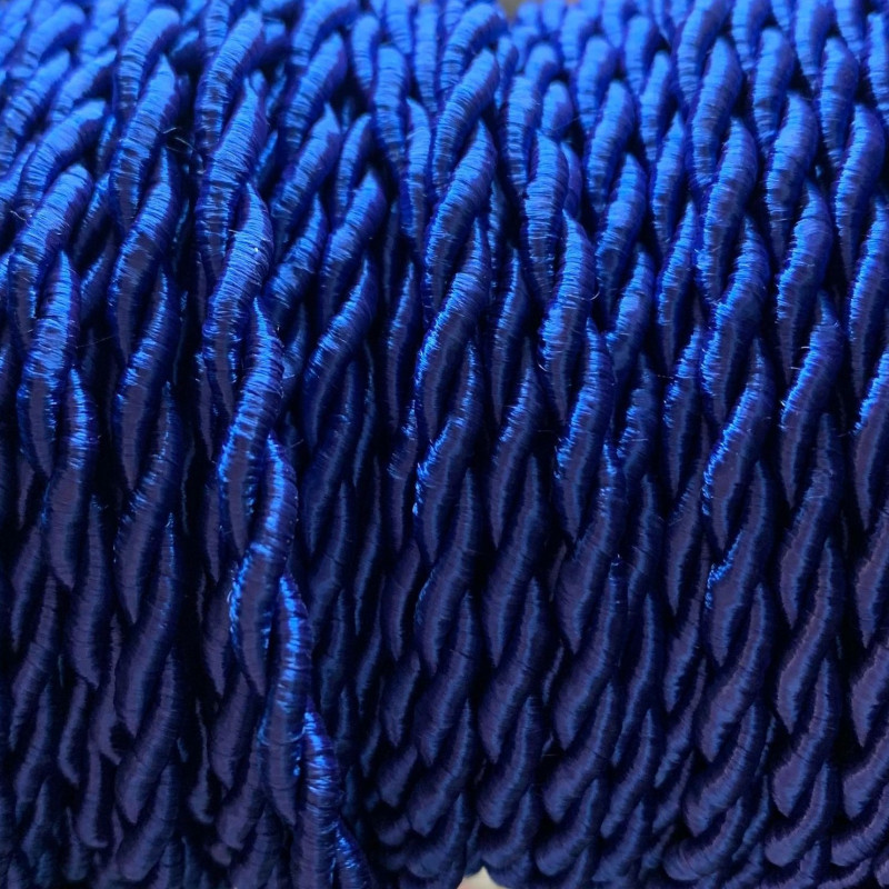 Câble textile torsadé. Gaine en viscose couleur bleu roi, vendu au mètre.