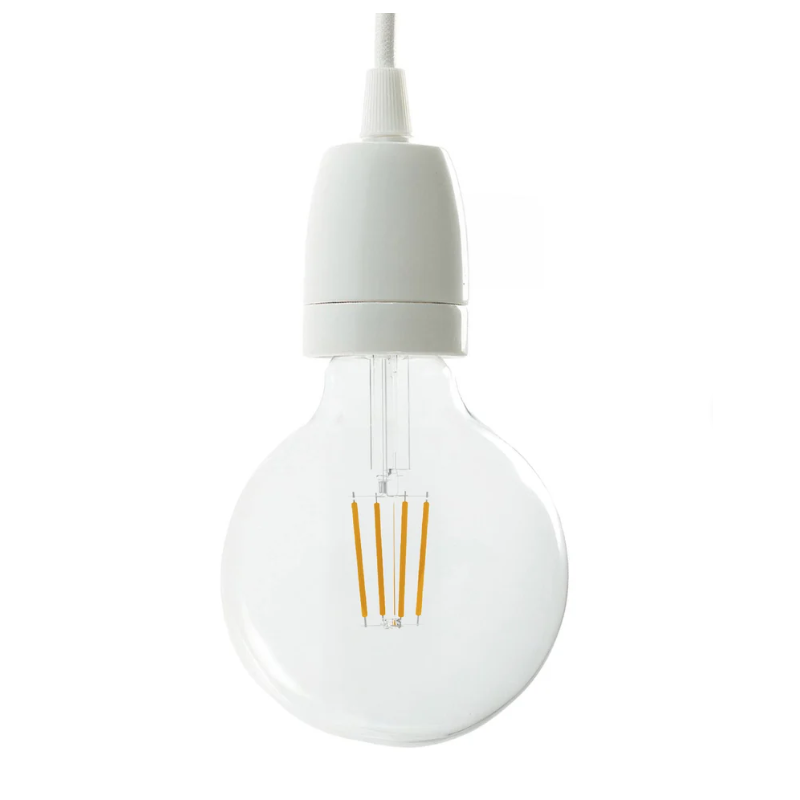 Compatibilité: tous câbles textiles, ampoule E27, à monter seule sur ampoule.