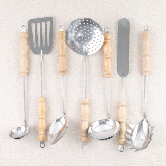 Ustensiles de cuisine en hêtre et inox