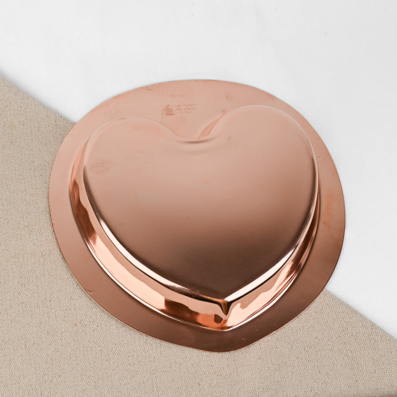 Joli moule à gâteaux en forme de coeur. Cette pièce unique en cuivre et étamé est fabriquée en Italie.