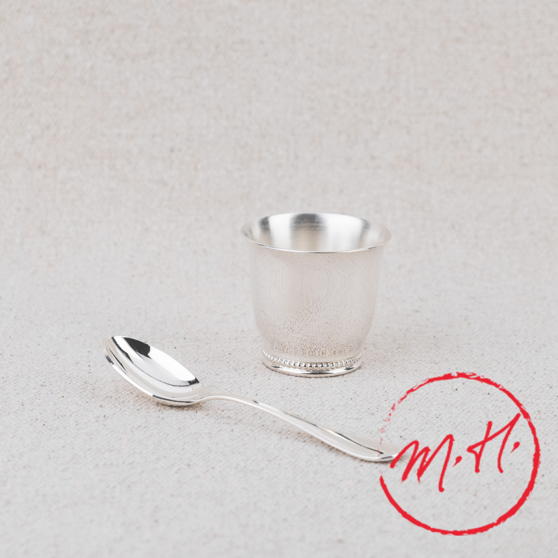Un coquetier en métal argenté, symbole d’élégance et de tradition, à offrir pour célébrer une naissance ou un baptême.