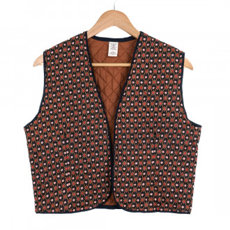 Ses deux cordons de serrage et sa coupe en pointe à l'avant et au dos plissé flattent toutes les tailles et morphologies. Cette coupe évasée et ce tissu fluide offrent une belle liberté de mouvement. L'imprimé est réalisé à la main au block-print : technique traditionnelle d'impression des textiles provençaux.