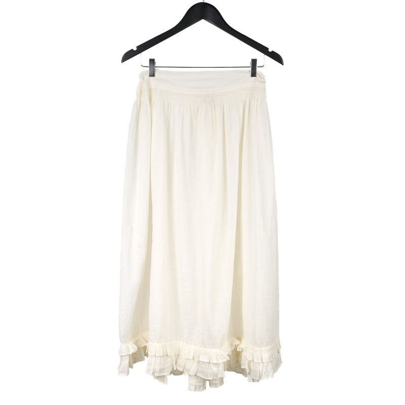 Apportez une note de légèreté et de douceur à votre garde-robe avec cette jupe longue en coton fin écru. Sa matière respirante épouse délicatement les mouvements, parfaite pour les journées ensoleillées. Son style intemporel permet de la porter décontractée ou apprêtée.
