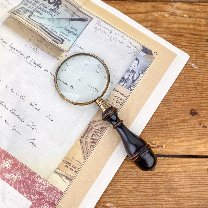 Apportez une touche joliment rétro à votre espace de travail avec cette loupe en laiton et son manche en bois sombre.