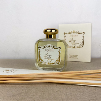 Un parfum d'intérieur en flacon avec des bâtonnets de bois pour embaumer votre intérieur des saintes et mythiques senteurs de l’officine Santa Maria Novella.