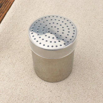 Saupoudreuse en acier inoxydable, idéale pour stocker vos aliments en poudre et saupoudrer vos préparations culinaires.