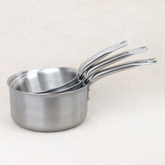 En inox multicouche 3-ply à finition brossée avec poignée en tube étanche solidement rivetée, cette casserole allie performance et élégance.